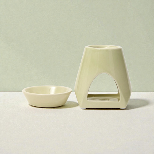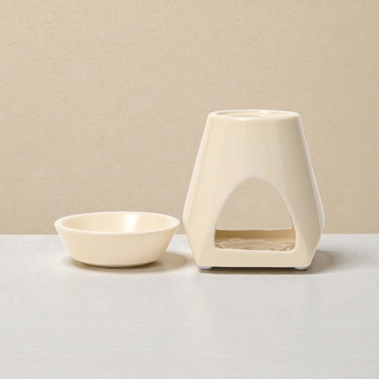 Grounded Earth Ceramic Wax Burner: 2 Piece Beige Tapered Wax And Oil Burner